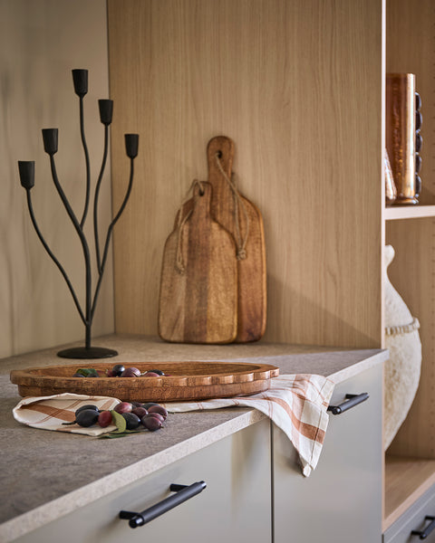 Et vakkert og naturlig skjærebrett i mangotre – både funksjonelt og dekorativt. Det varme treverket gir et rustikt og autentisk uttrykk som passer perfekt på kjøkkenbenken eller på bordet til servering.