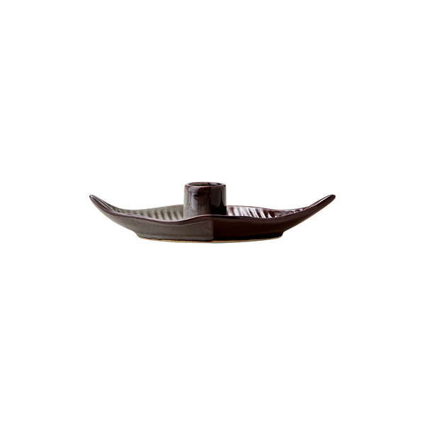 Elegant lysestake i stentøy formet som et blad – en vakker detalj som tilfører varme og personlighet til interiøret. Den glaserte overflaten i brun og offwhite gir et naturlig og tidløst uttrykk.