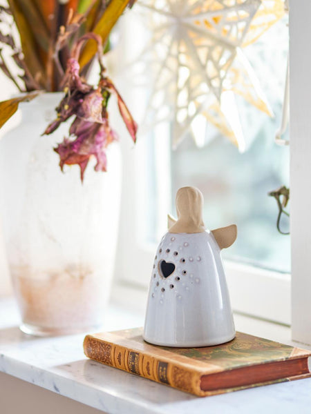 "Ruth" fra Bloomingville er formet som en engel, laget av hvitt steintøy med fine detaljer. Engelen er batteridrevet med innebygget lys. Det innebygde lyset skaper en varm glød gjennom det hjerteformede utsnittet. Denne engelen er ikke bare et sjarmerende tilskudd til hjemmedekoren, men også en perfekt gaveidé til dem som verdsetter håndverk og tidløs skjønnhet. Det myke lyset gir en beroligende atmosfære.