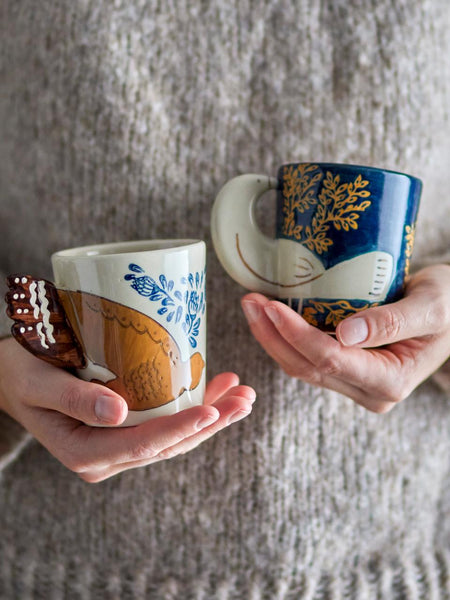 Bloomingville hezha blå kopp er perfekt som pynt eller til å drikke kaffe ut av. Hver kopper unik, med nydelige detaljer.