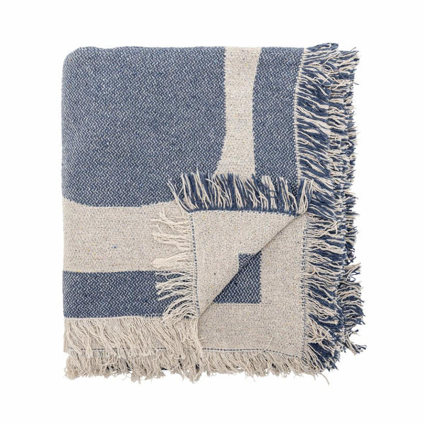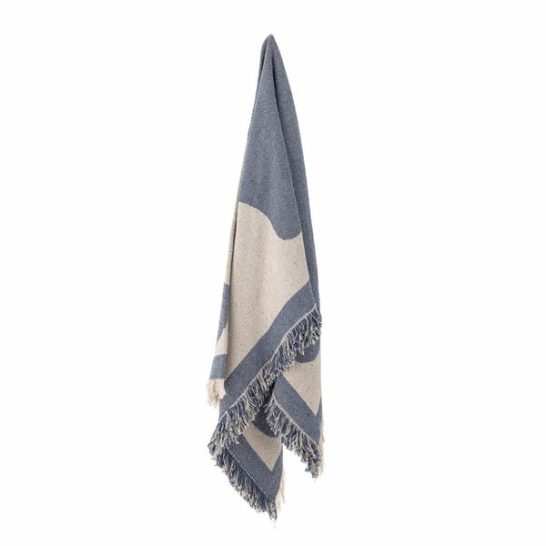 Ethan pledd i blå fra bloomingville har et nydelig utrykk. Kan brukes både som pledd på sofaen, men også duk til bordet.