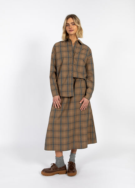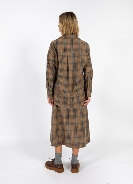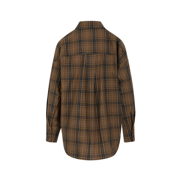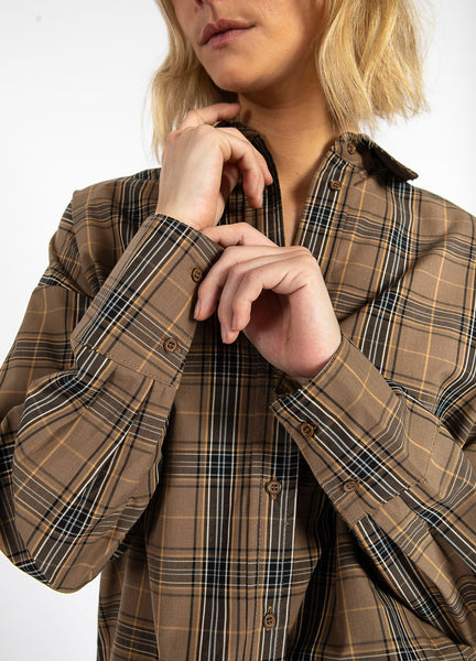 Langermet skjorte med rutemønster og avslappet passform. Skjorten har klassisk krage, knappelukking og høye mansjetter som gir et tidløst, men samtidig moderne uttrykk. Perfekt til både jeans og skjørt – bruk den åpen over en topp for et mer casual lag-på-lag-look.