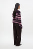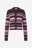 Stripet cardigan med rund hals laget i en myk og lun fiberblanding med ull og alpakka. Den har et klassisk stripemønster, knappelukking i front og ribbestrikkede kanter ved hals, mansjetter og nederkant. Cardiganen har en avslappet og litt oversized passform – perfekt for lag-på-lag-styling og hverdagskomfort.