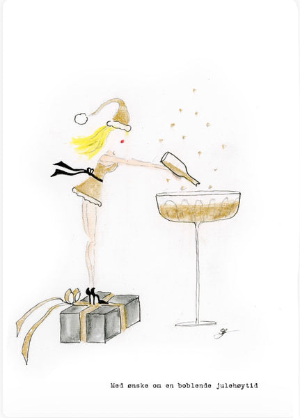 Koselig julekort tegnet og malt av Sølje Bergman, med sitatet «O’ jul med din glede» 💕 Kortet er enkelt, med god plass på den hvite baksiden til å skrive en hyggelig julehilsen! Størrelse A7 💌