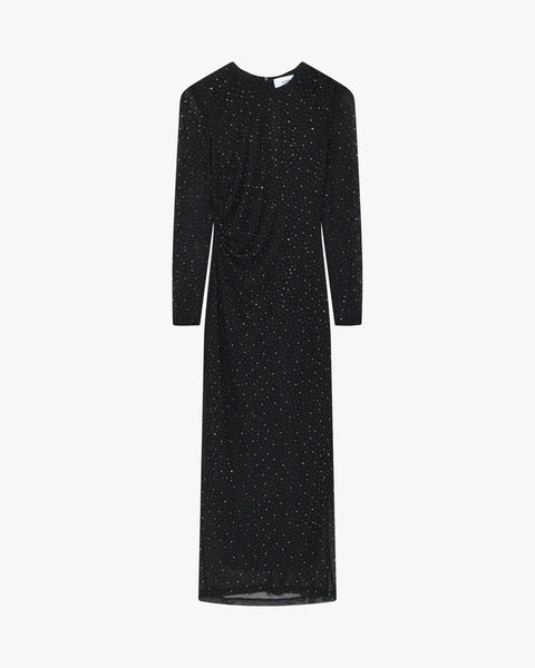 Glamour møter komfort i denne elegante maxikjolen med glitrende rhinestones. Den figurnære passformen med stretch gir en flatterende silhuett og gjør at du føler deg komfortabel hele kvelden.