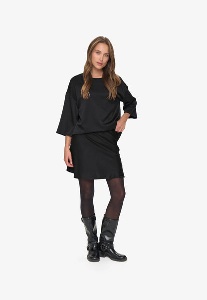 Fint, kort skjørt med lett utsving og tidløst snitt. Skjørtet har litt elastikk i livet for god passform og glidelås i siden. Et klassisk plagg som enkelt kan styles til både hverdag og fest – med strikkegenser, skjorte eller en elegant topp.