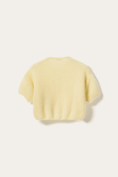 Lorell Knit Cardigan fra Noella er en myk og feminin cardigan i fluffy mohairblanding. Den har rund hals, korte ermer og knappelukking i front med dekorative perlemorsknapper. Den litt kortere, rette passformen gir et moderne uttrykk som er enkelt å style til både hverdag og mer pyntede antrekk.